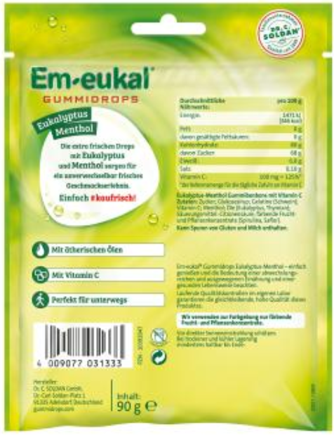 - Em-eukal Gummidrops Eucalyptus-Menthol tout simplement apprécier et noter l’importance d’une alimentation variée et équilibrée et d’un mode de vie sain.