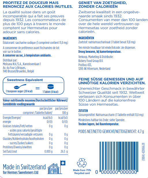 Hermesetas 400 Comprimés Mini Sweeteners Maximum Taste Hermes - Educolorant de Table à Base de Saccharine