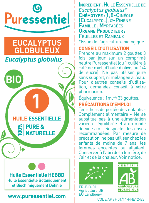 Puressentiel Huile Essentielle Eucalyptus Globuleux ingrédients