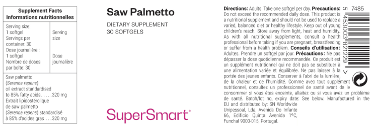 - SuperSmart Saw Palmetto est un complément alimentaire à base de baies de palmier nain (Serenoa repens)