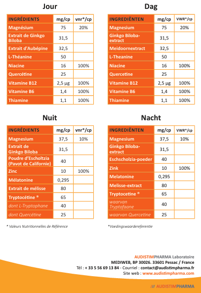 Audistim Jour/Nuit ingrédients