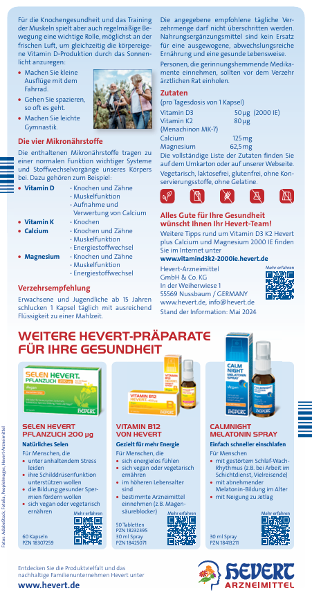 - Vitamin D3 K2 Hevert Plus Calcium et Magnésium 2000 UI contribuent au maintien d’une ossature normale *