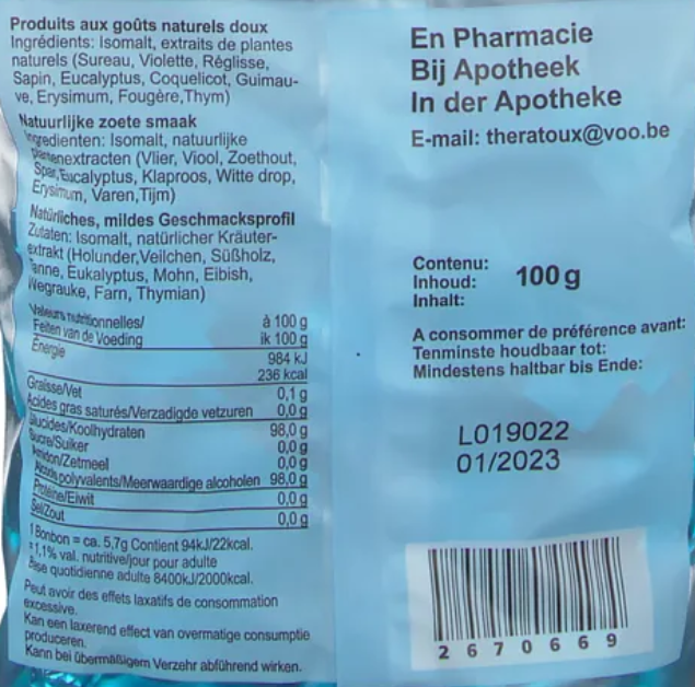 - Theratoux Pastilles sans sucre est un alliment qui rafraîchit les voies respiratoires